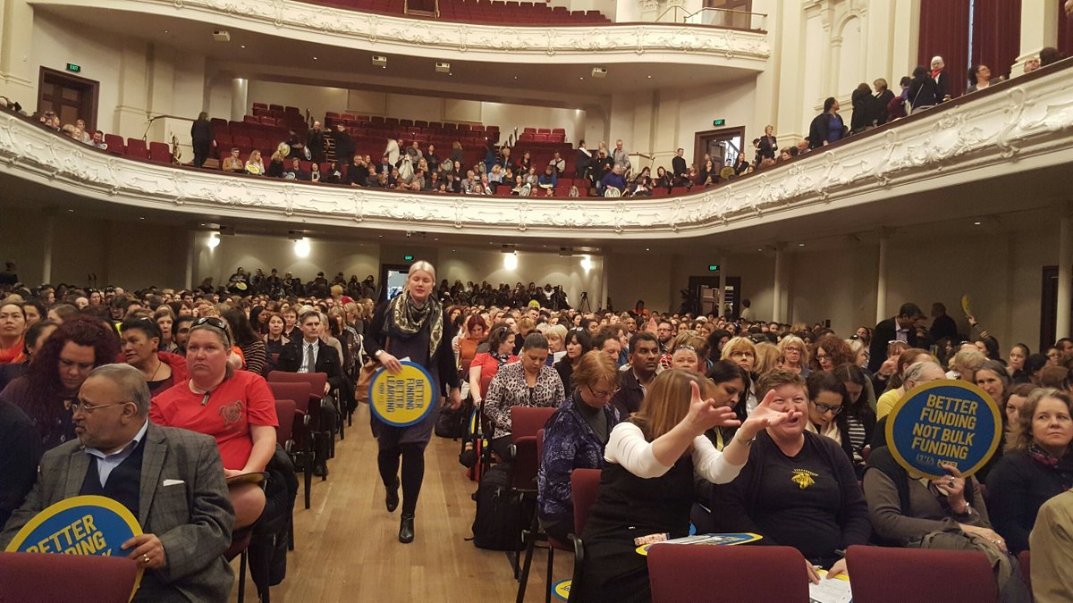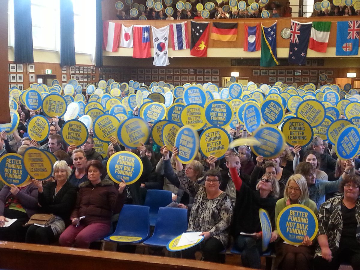 Thousands of teachers filled the Auckland and Wellington town halls to voice their anger and concern about the government’s plans. Thousands more filled halls from Invercargill to Northland – these mass meetings show the depth of the opposition to Bulk Funding 2.0 amongst teachers. There is a clear mood for resistance.